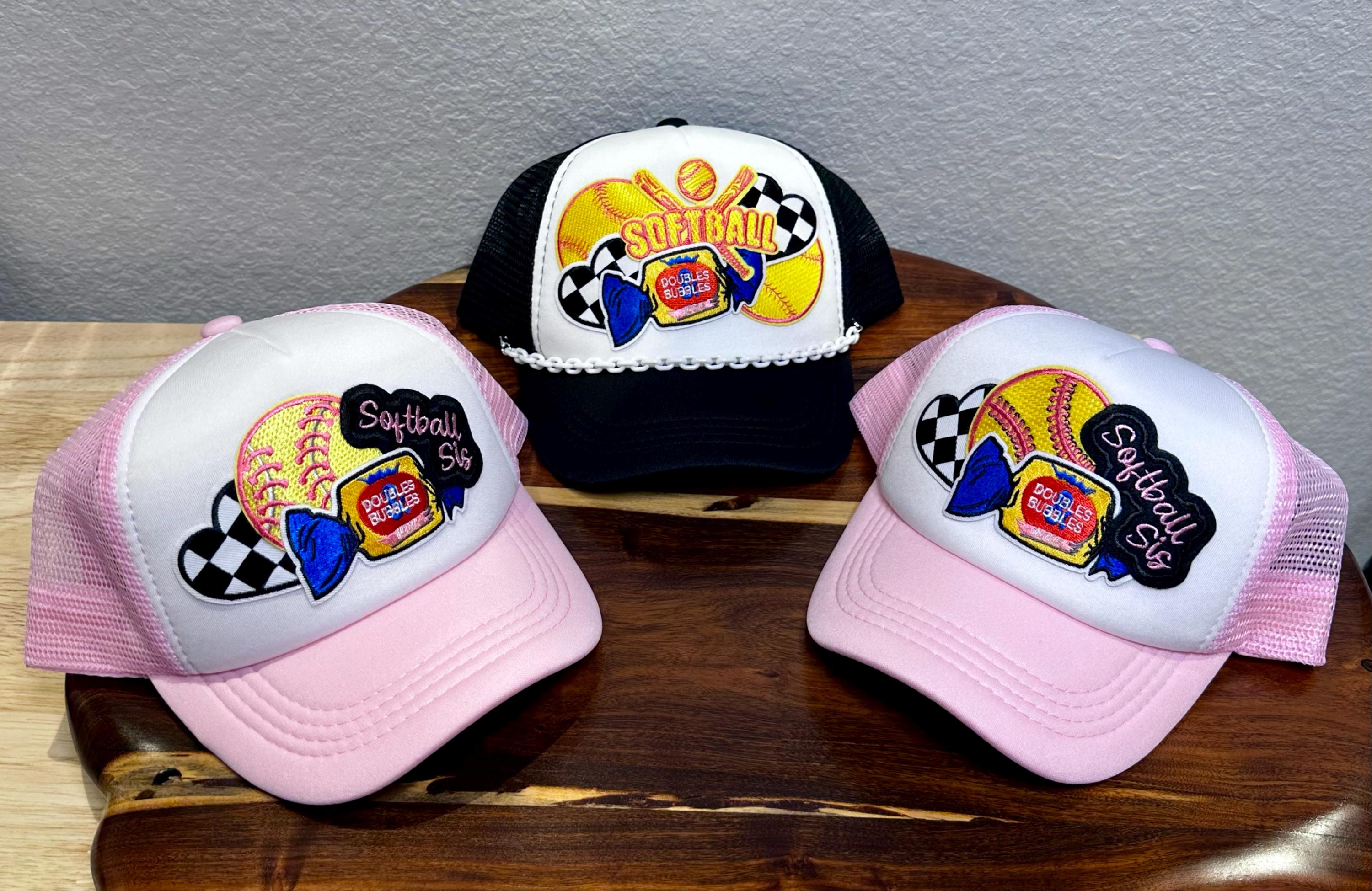 The black embroidered patch with soft pink lettering makes it a cute and stylish accessory for softball sisters, softball moms, and softball fans. It’s a great way to support your athlete at games, tournaments, and school events.